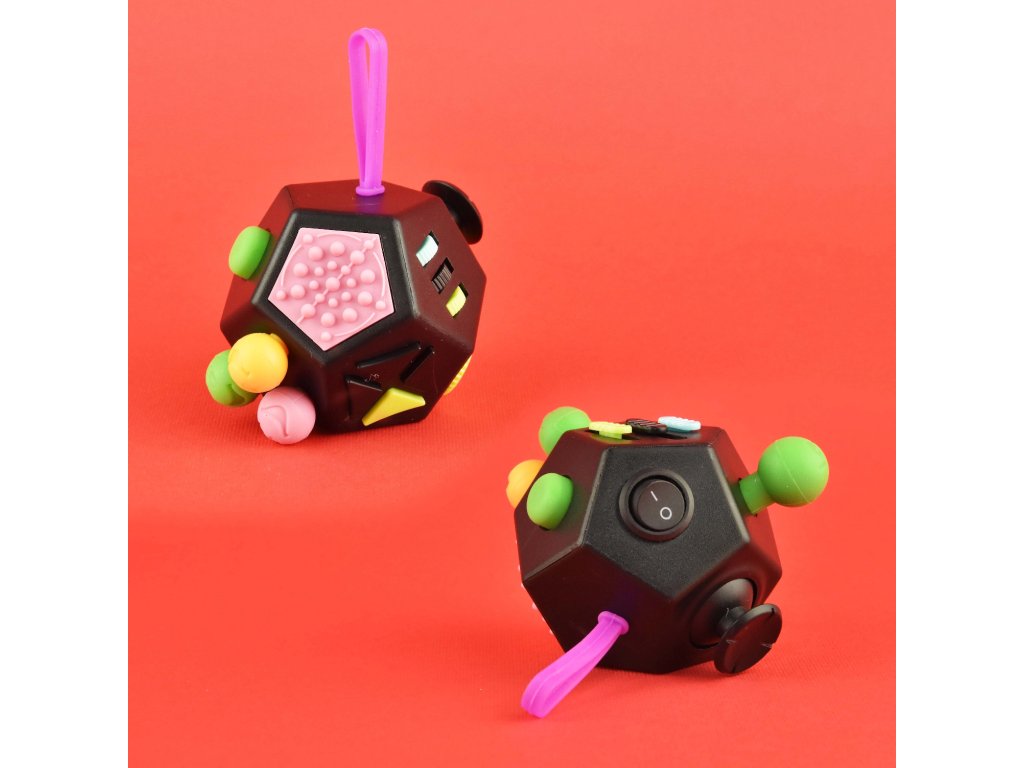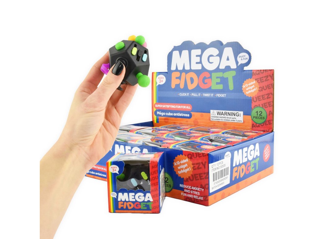 Zábava, která neomrzí! Mega fidget kombinuje mačkání, přepínání, točení a tahání, což uklidní a zabaví děti i dospělé.