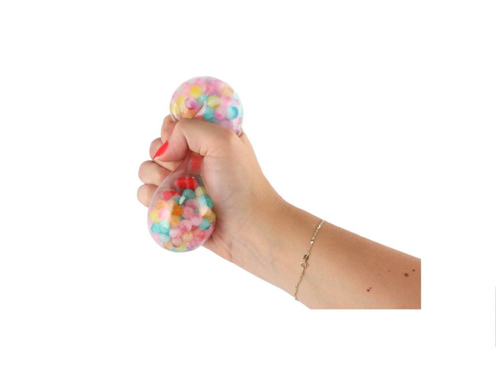 Tato antistresová hračka s gelovými kuličkami uvnitř nabízí intenzivní smyslový zážitek, který potěší nejen děti, ale i dospělé. Při zmáčknutí se míček deformuje a kuličky se vytlačují ven, čímž dochází k taktilní, proprioceptivní a vizuální stimulaci.