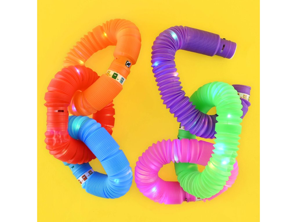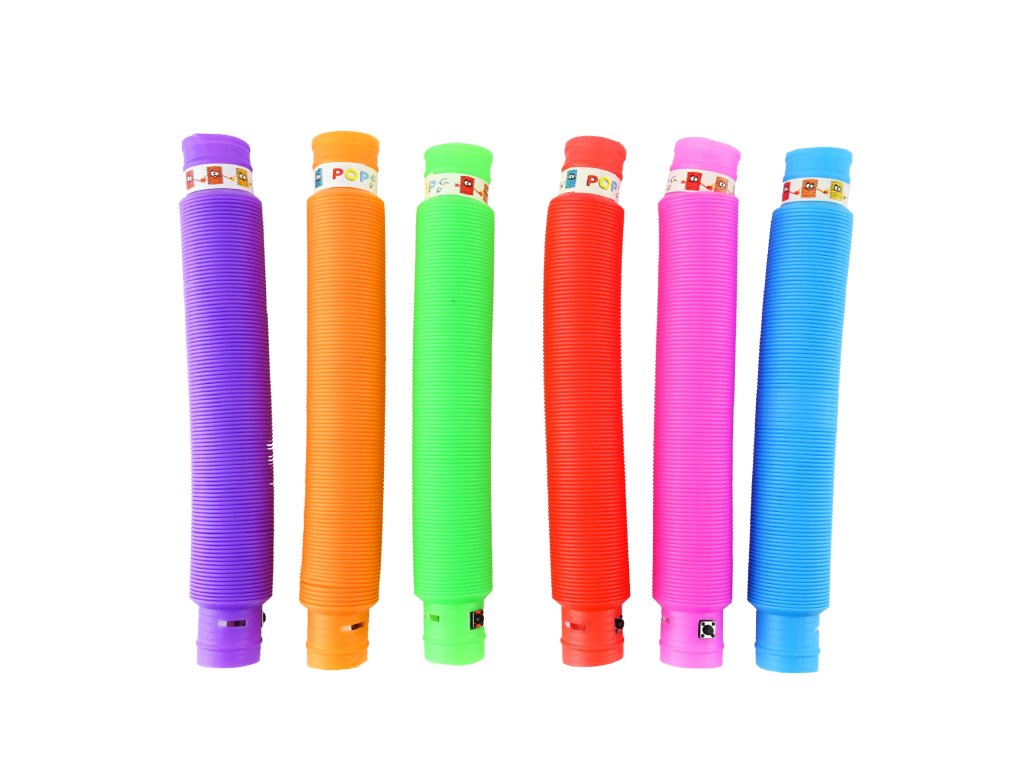 6 barevných trubiček, které se natahují, ohýbají a při pohybu vydávají příjemné „lupání"