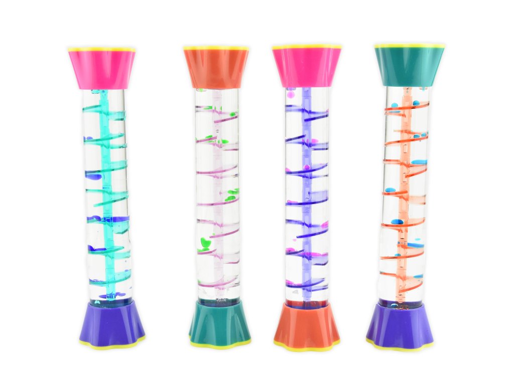 Senzorická láhev s barevnou olejovou tekutinou je jednoduchou, ale velmi účinnou senzorickou pomůckou. Po spirále pomalu padající barevné kuličky oleje přitahují zrak a působí uklidňujícím dojmem.