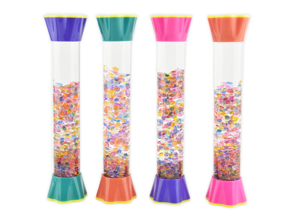 Senzorická láhev s barevnými kuličkami je jednoduchou, ale velmi účinnou senzorickou pomůckou. Pomalu mihotající se barevné kuličky přitahují zrak a působí uklidňujícím dojmem.